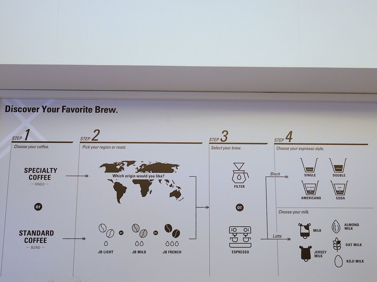 しかもエスプレッソには、シングル・ダブル・アメリカーノ・ソーダがあり、カフェラテには、ミルク・ジャージーミルク・アーモンドミルク・オーツミルク・米糀ミルクがある!