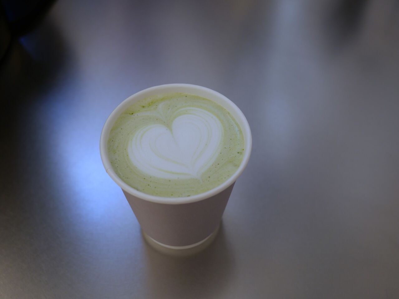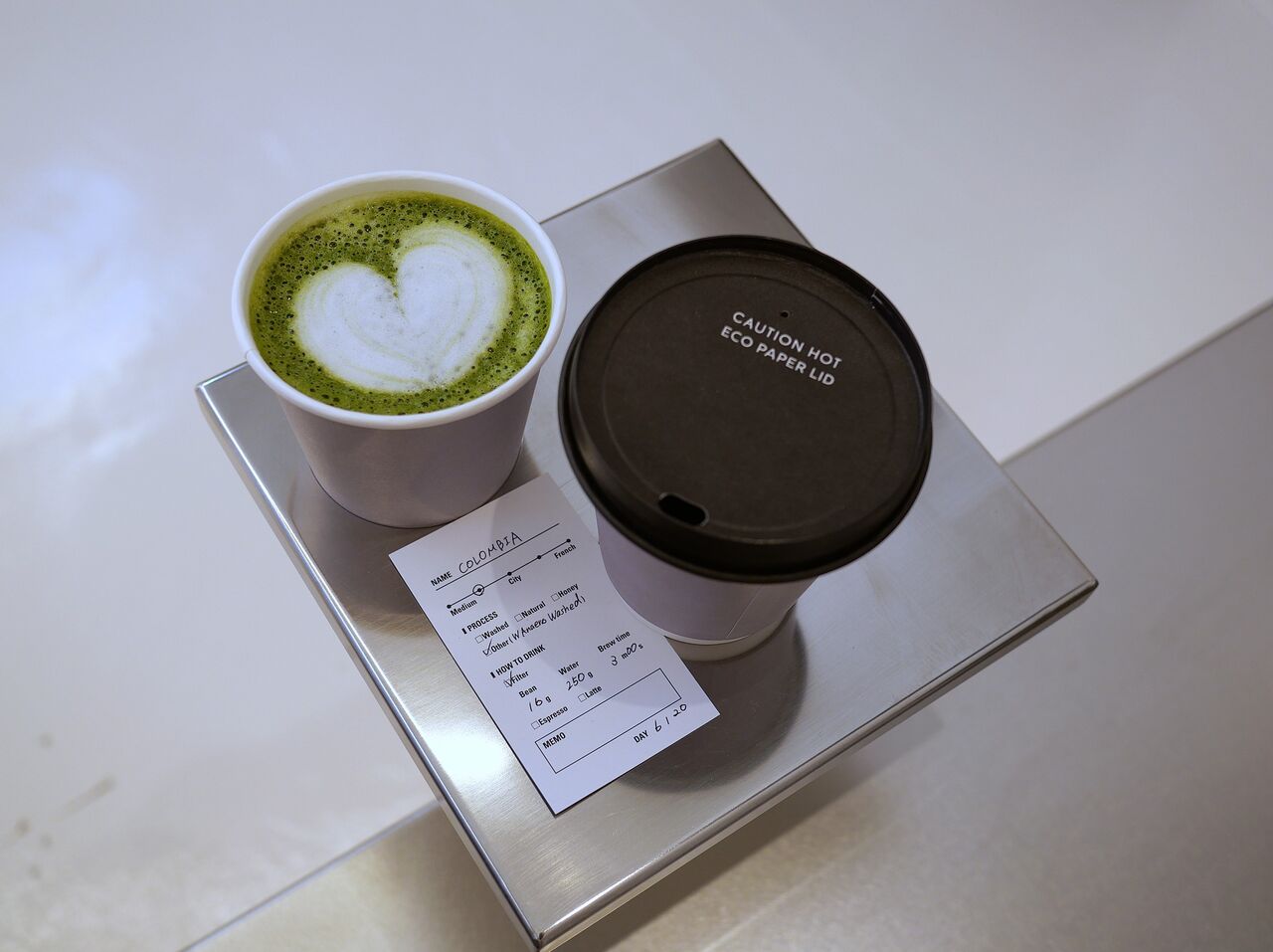 この日は2人で取材に行ったので、フルーティな香りがしたスペシャルティコーヒーと、フラットグリーンという抹茶ラテをお願いしてみました