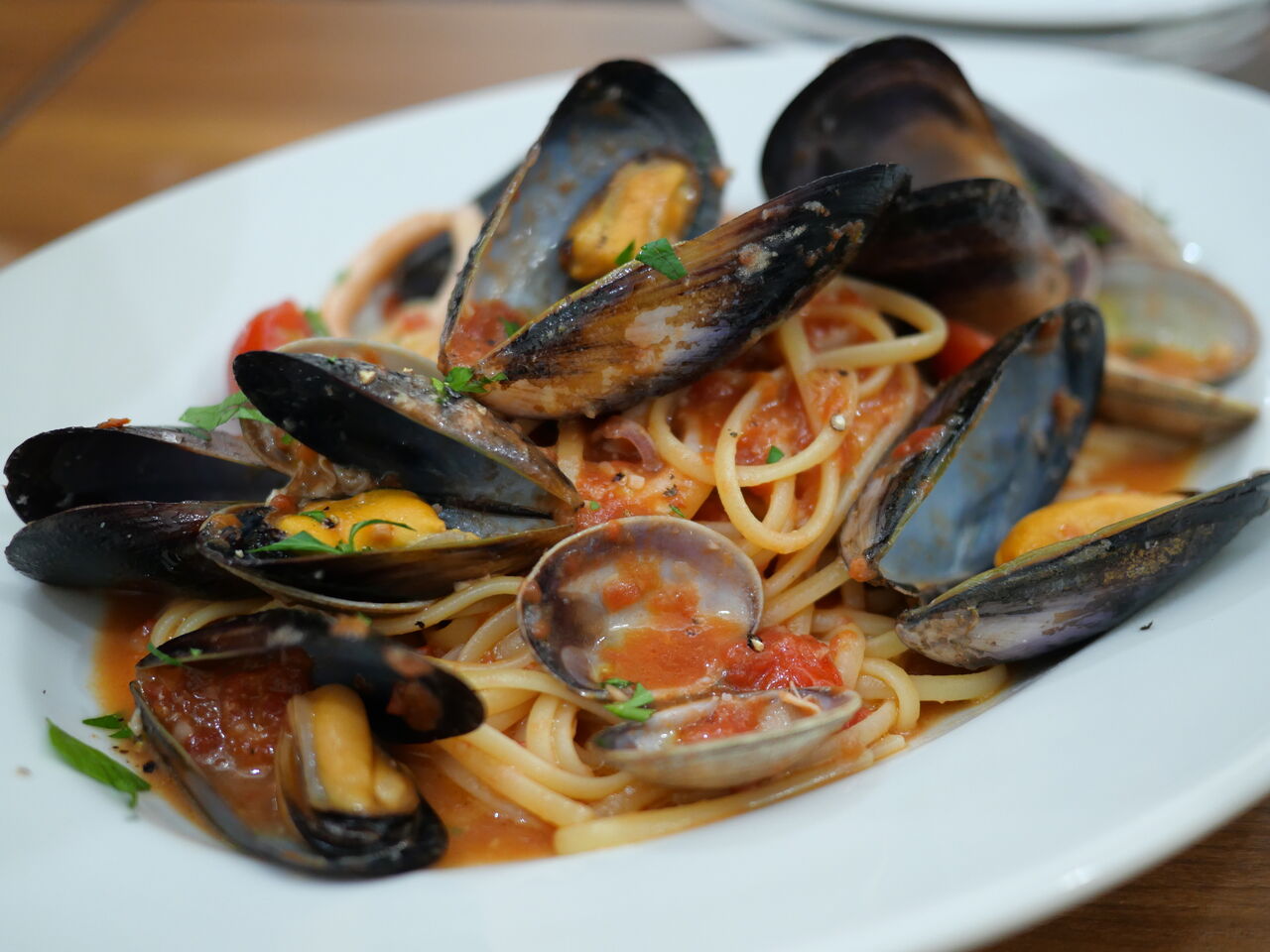 こちらはブコ ディ ムーロの看板メニュー的なパスタ、南イタリア港町のペスカトーレ リングイネ