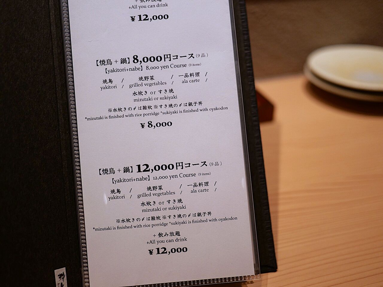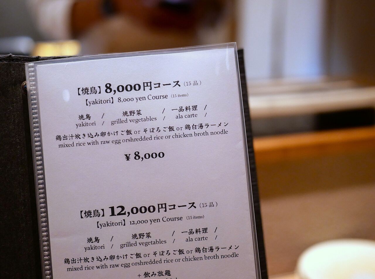本日は【焼鳥】8,000円コース(全15品)のコースを試食