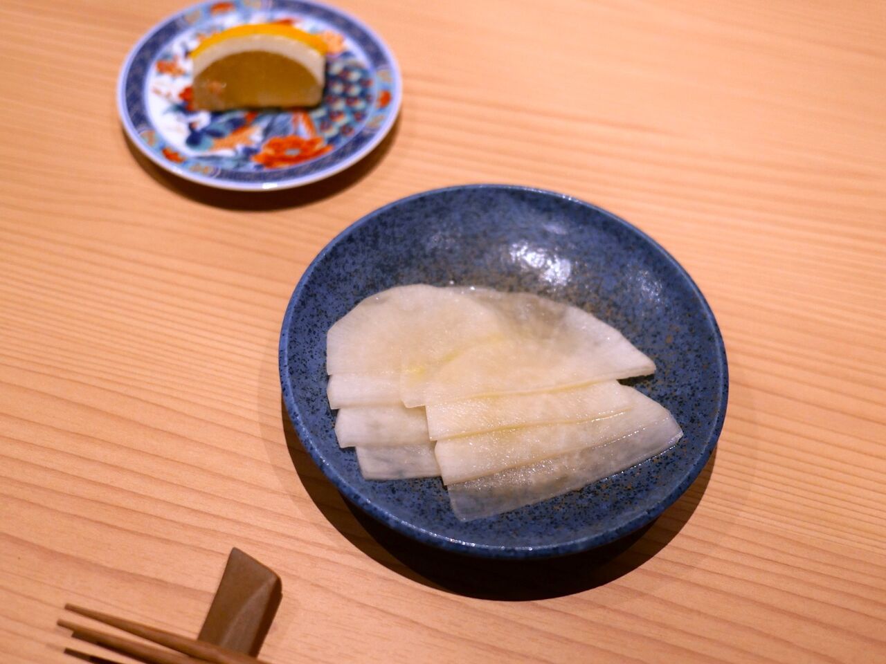 まずは箸休めの千枚漬けと、焼き鳥に好みでかける用のレモンが運ばれてきます