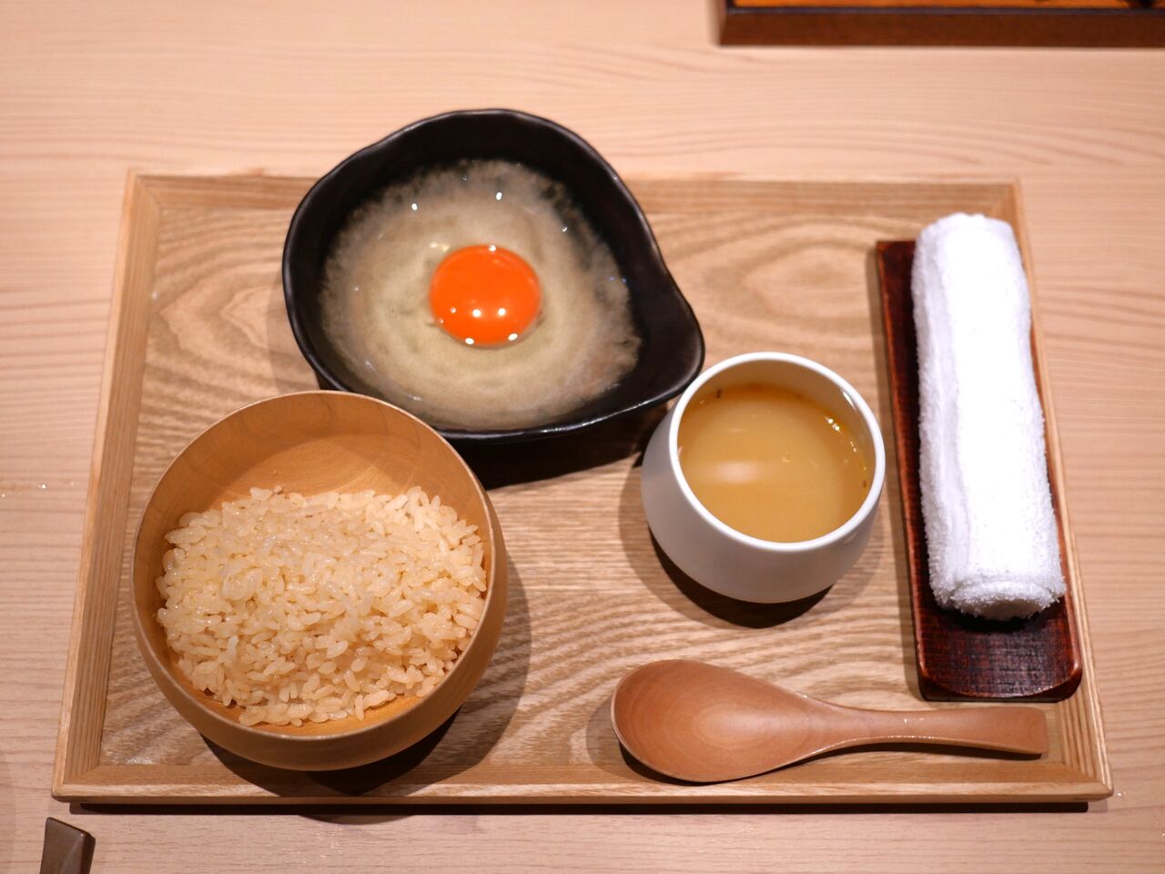 右は鶏出汁スープ、そして卵は埼玉の“たかはしたまご”