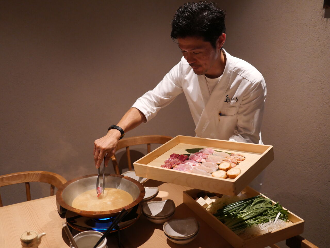 ちなみに鳥いちさんには、焼き鳥+鍋(水炊きorすき焼)のコースもありまして、今回特別にこちらの試食も用意してもらいました