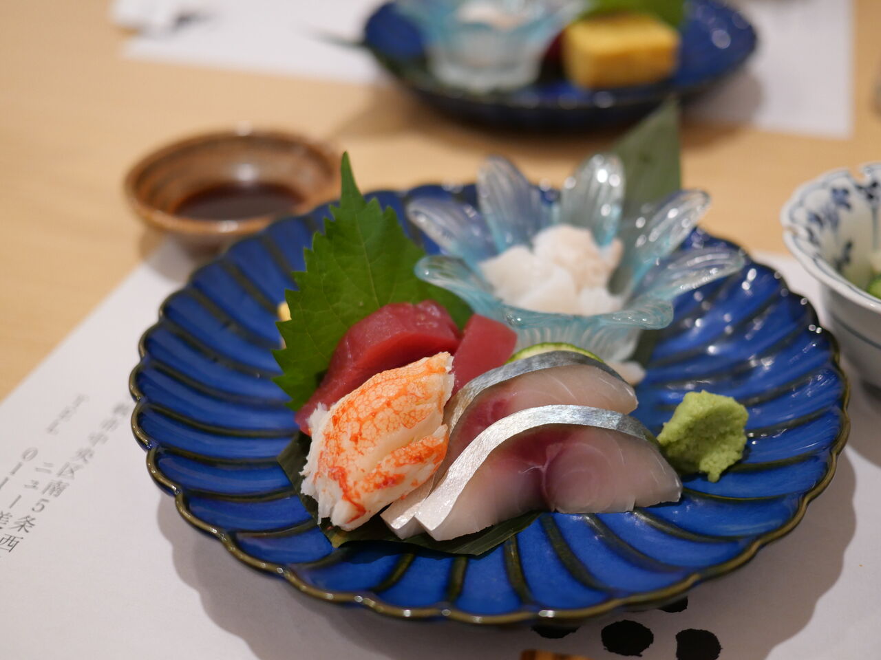 打ち合わせのお相手の行きつけのお寿司屋さんということで、この日のコース内容はおまかせでしたが、お刺身盛り合わせはすごくキレイで、見た目で美味しさが伝わってきます^^
