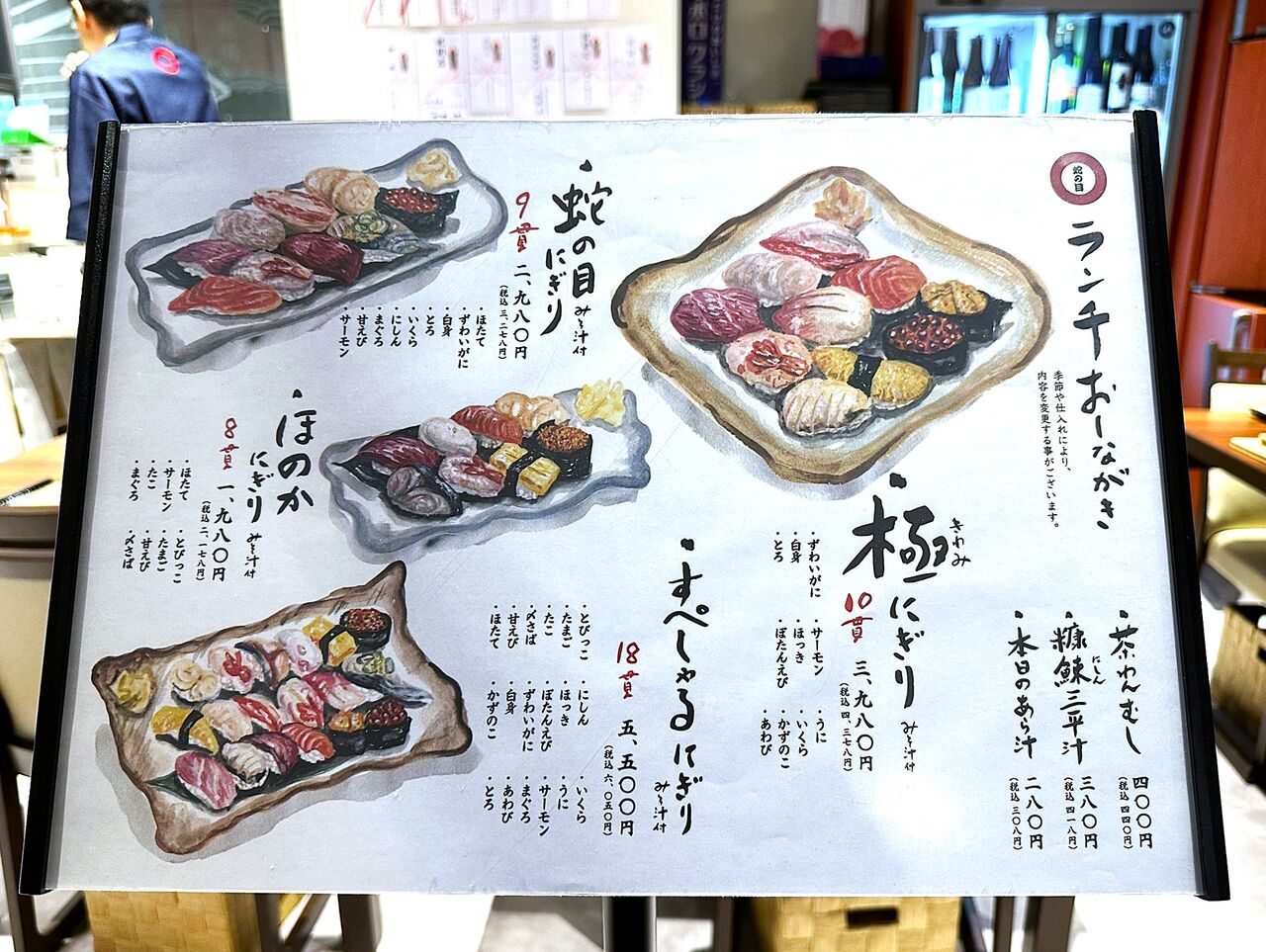 握りのメニューは、今のところランチもディナーも同じのようです