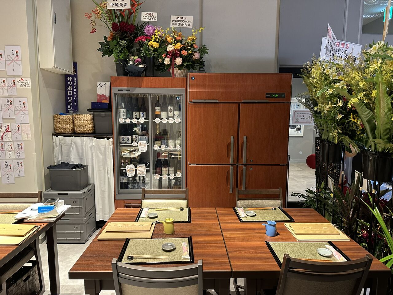 テーブル席の奥には日本酒とワインのボトルも見えます🍶🍷