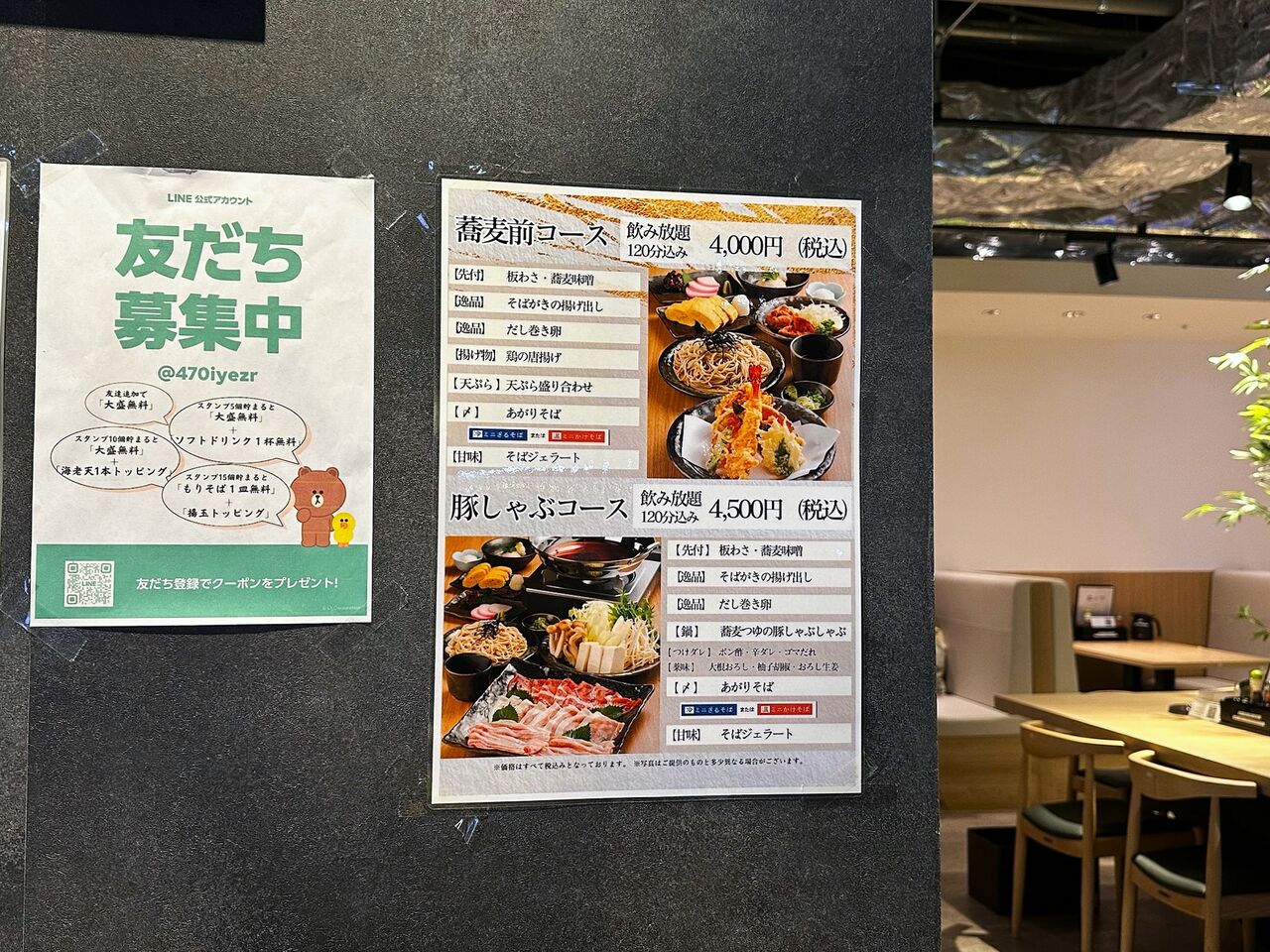 入口に貼ってありました~!“豚しゃぶコース”飲み放題付きで4500円(税込)