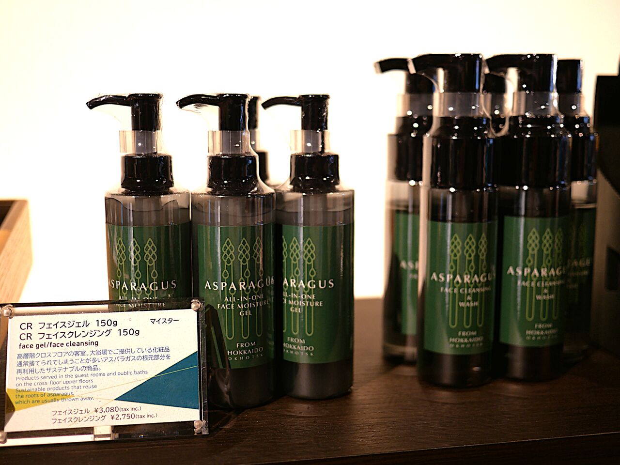 クロスホテルさんのショップコーナーは、他の土産店ではなかなか見かけない、マニアックでセンスの良い道産の商品が並んでいるのですが、大浴場や部屋にも置いていあった、アスパラガスを使用したクレンジングとジェルの使用感がすごく良かった💕
