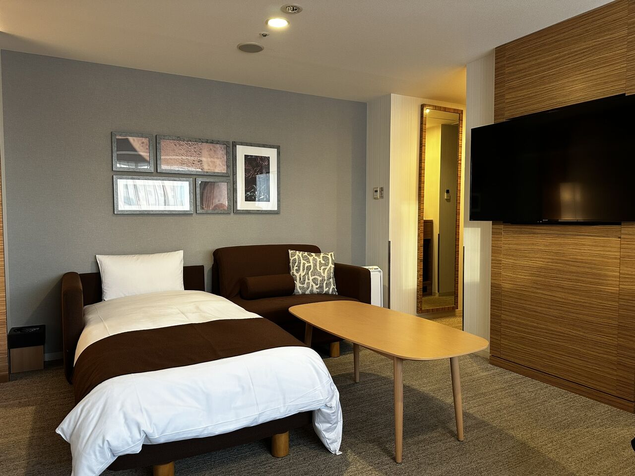 クロスホテルは部屋によってデザインが異なりますが、このお部屋は全体のトーンがすごく落ち着きがあって、入った瞬間、居心地の良さを感じました^^