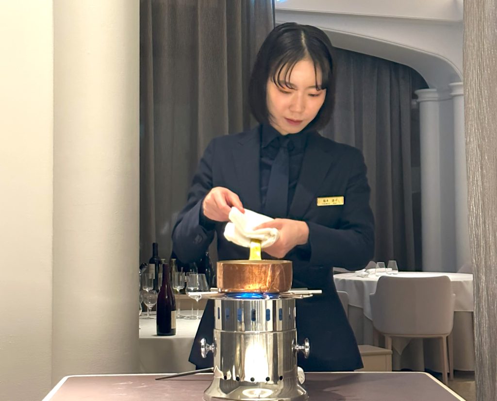 コース+アルコールのペアリングコースにしていたのですが、席に着く前にこの光景が目に留まりまして、またもやテンションが上がってしまいました!