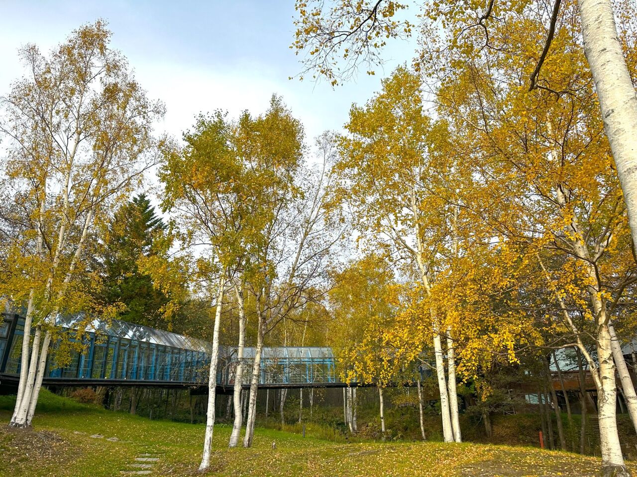 渡り廊下から行く手段もありますが、お天気も良かったので色づいた森の中を抜けてみました^^