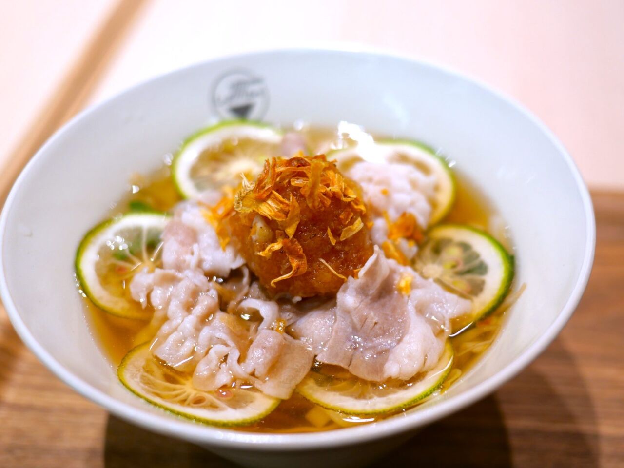 柑橘を輪切りにして器に並べるスタイルって、夏に食べる冷たい麺のイメージが強いし、実際冷たいのしか食べたかったことがなかったけど、今回食べてみて思ったのは、温かい方が柑橘の香りがしっかり楽しめる!!ということ