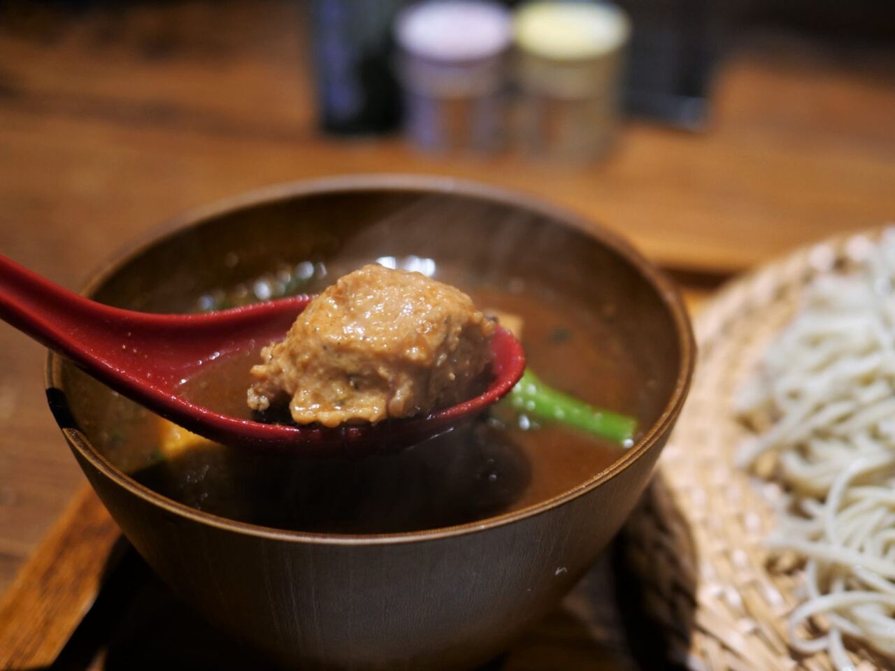 蕎麦は160gあるし、カレーの中には肉団子も野菜もたっぷり入っているし、かなりな食べ応え!