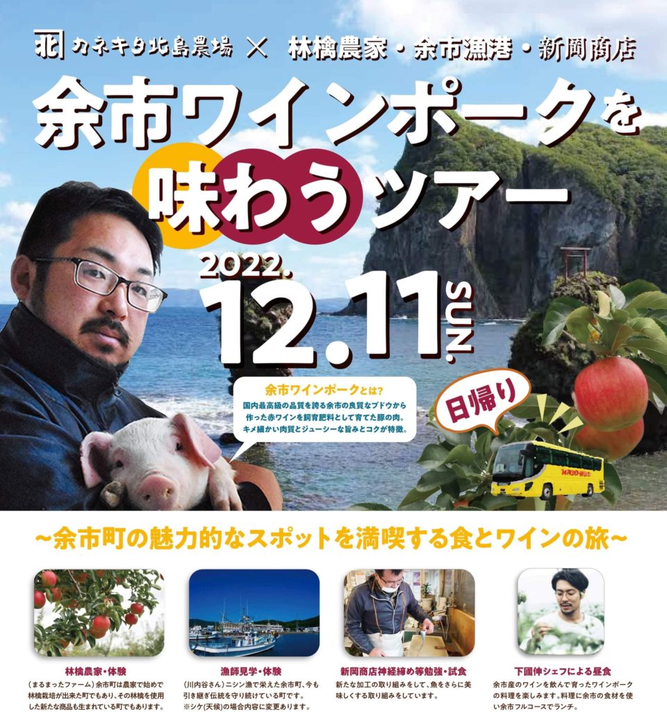 先日、【カネキタ北島農場】さんがワインを飲ませて育てている、余市ワインポークを味わうモニターツアーが行われまして、オサナイも参加してきました!