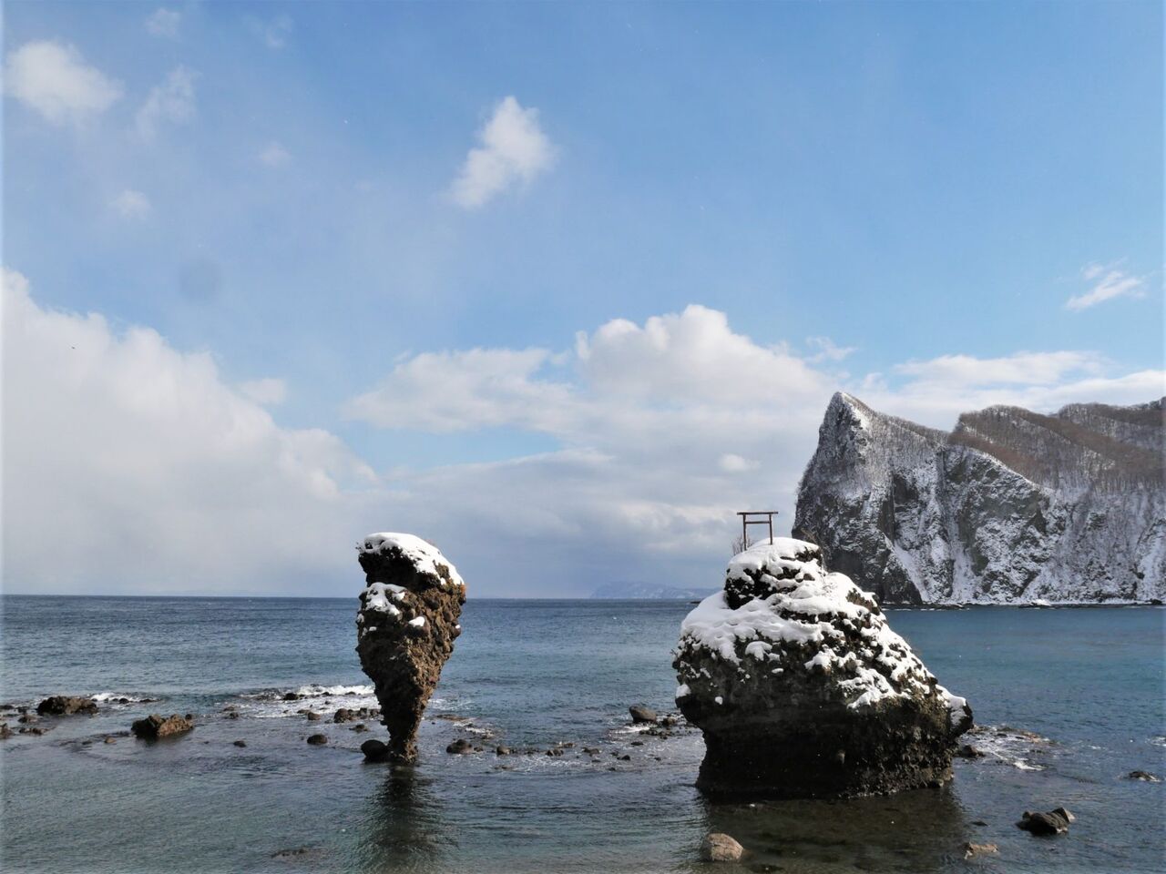 目の前がこの景色!えびす岩と大黒岩だそうです^^