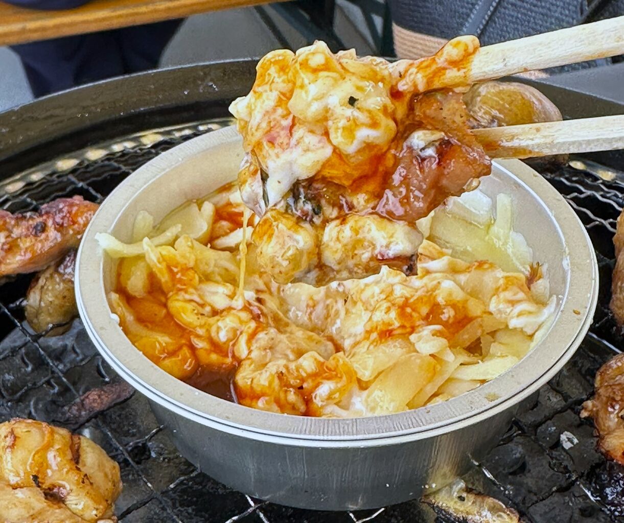 真ん中にチーズの入ったアルミカップを置いて、タッカルビも堪能♪