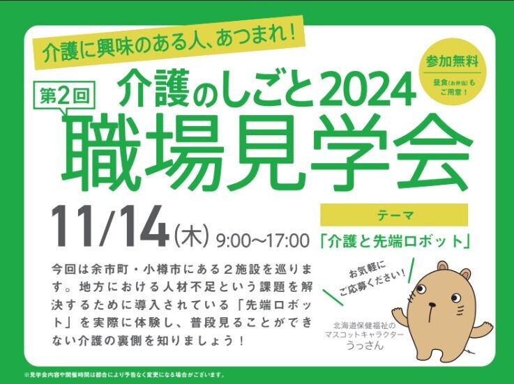 11月14日(木)余市町と小樽市にある2つの介護施設を巡る「介護のしごと職場見学会」を開催します。