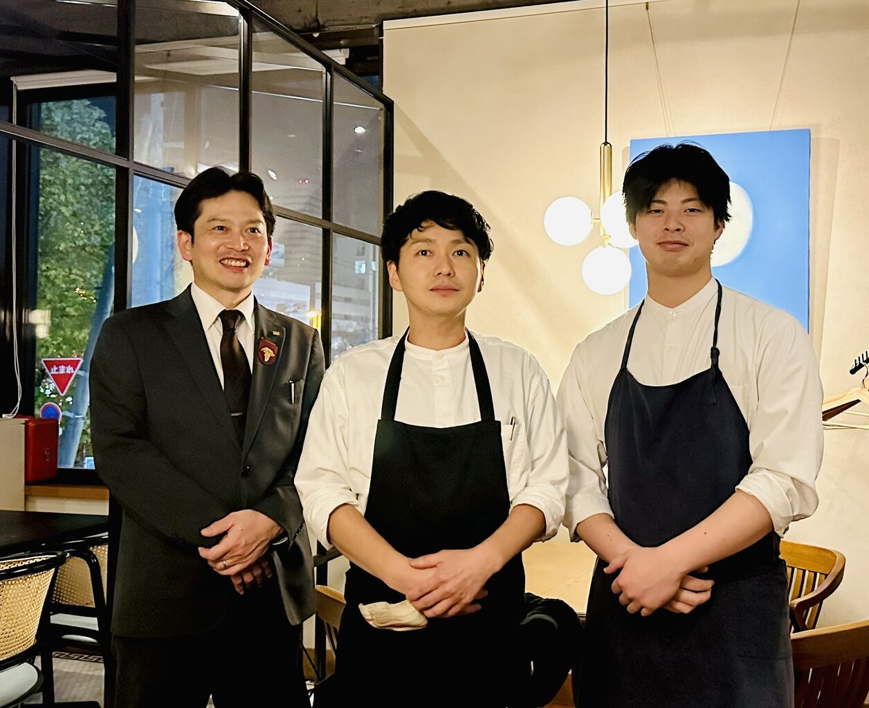 中央が2代目シェフの宍戸千秋さん、そして左がソムリエの池戸丈暁さん