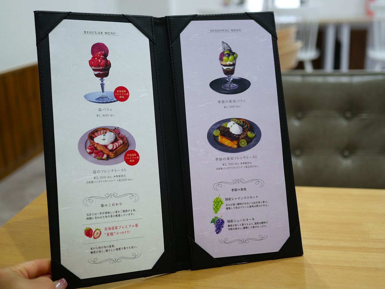 これがまた、“フルーツパーラー”にピッタリな重厚感のあるメニュー表