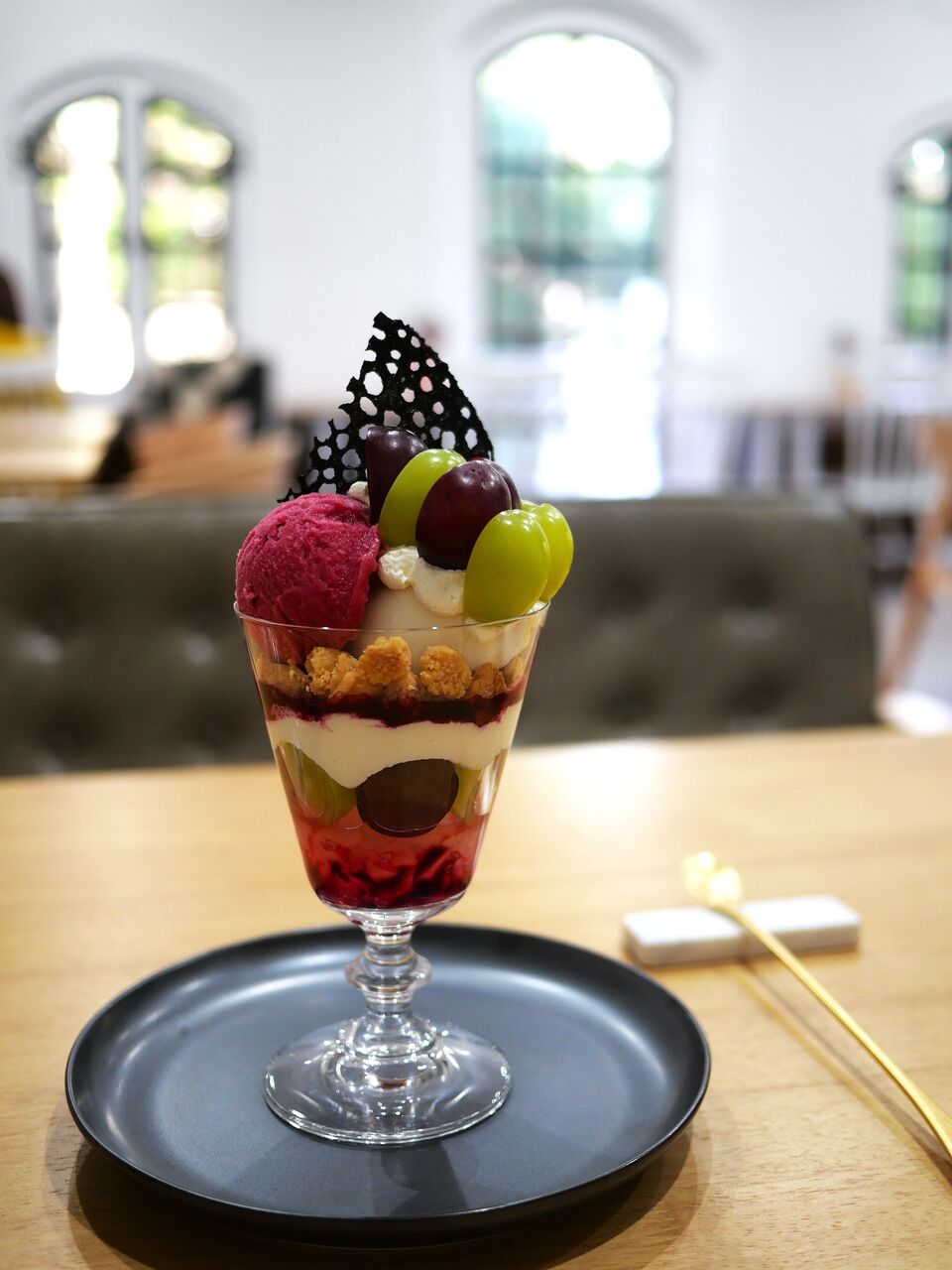 2名で行ったので、パフェはぶどう、フレンチトーストは苺でオーダーしてみました