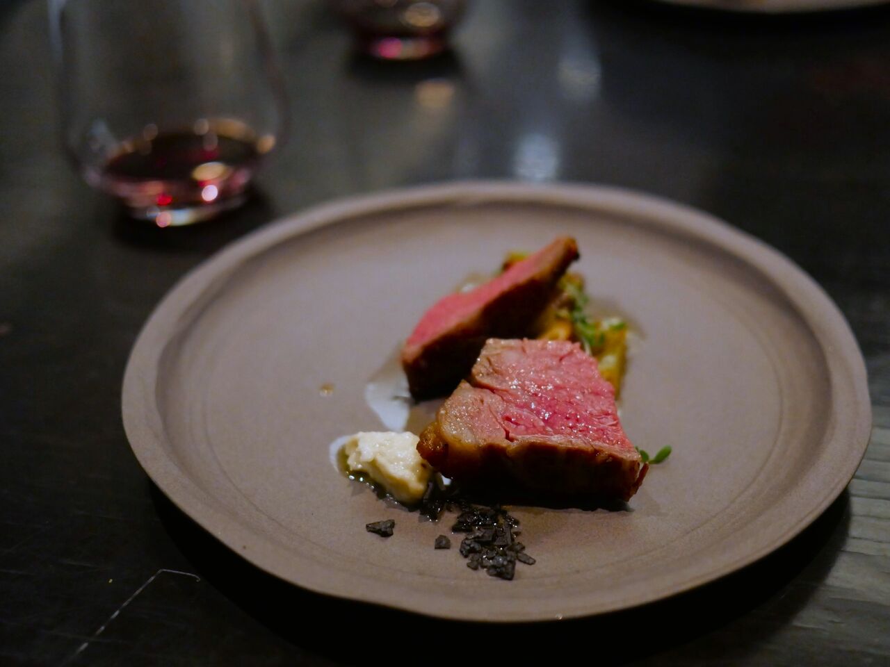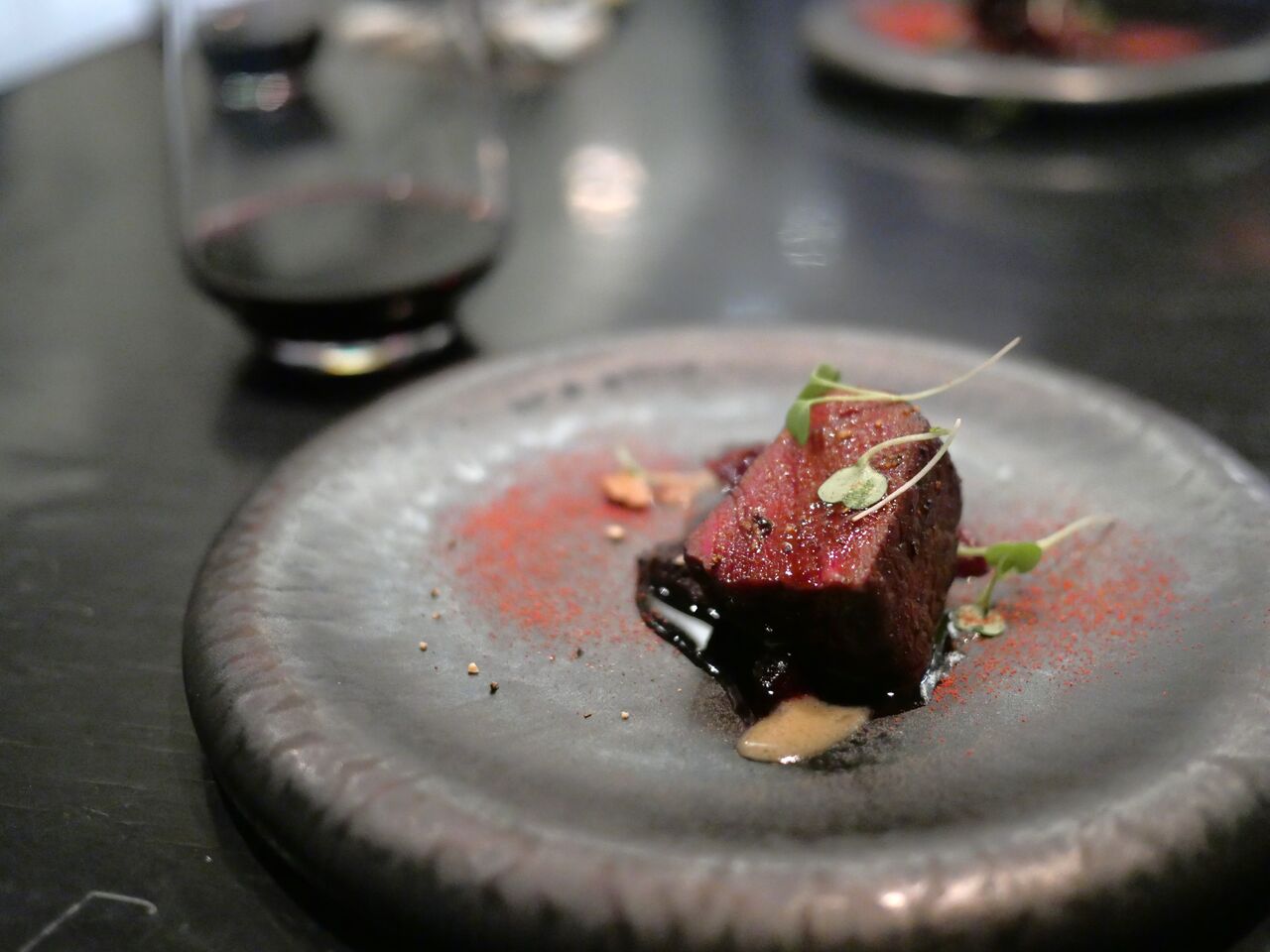 エゾシカは食べる機会が多い方だけど、一口で素晴らしく良い状態&火入れが完璧なことが分かった一皿!地元の黒ニンニクとビーツ、マデイラワインを使用した存在感のあるソースも完璧😋