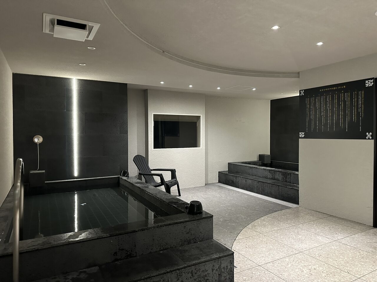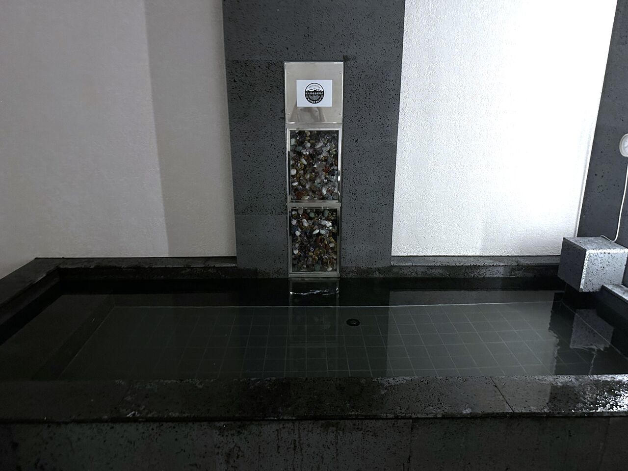 水風呂は、富士山の溶岩鉱石を使用して人工的に生成された「富士山の伏流水」を使用しているそうです。溶岩鉱石以外にも、数十種類の天然鉱石層を再現して水に滲ませ、天然ミネラルを豊富に含む軟水水風呂になっているとのこと